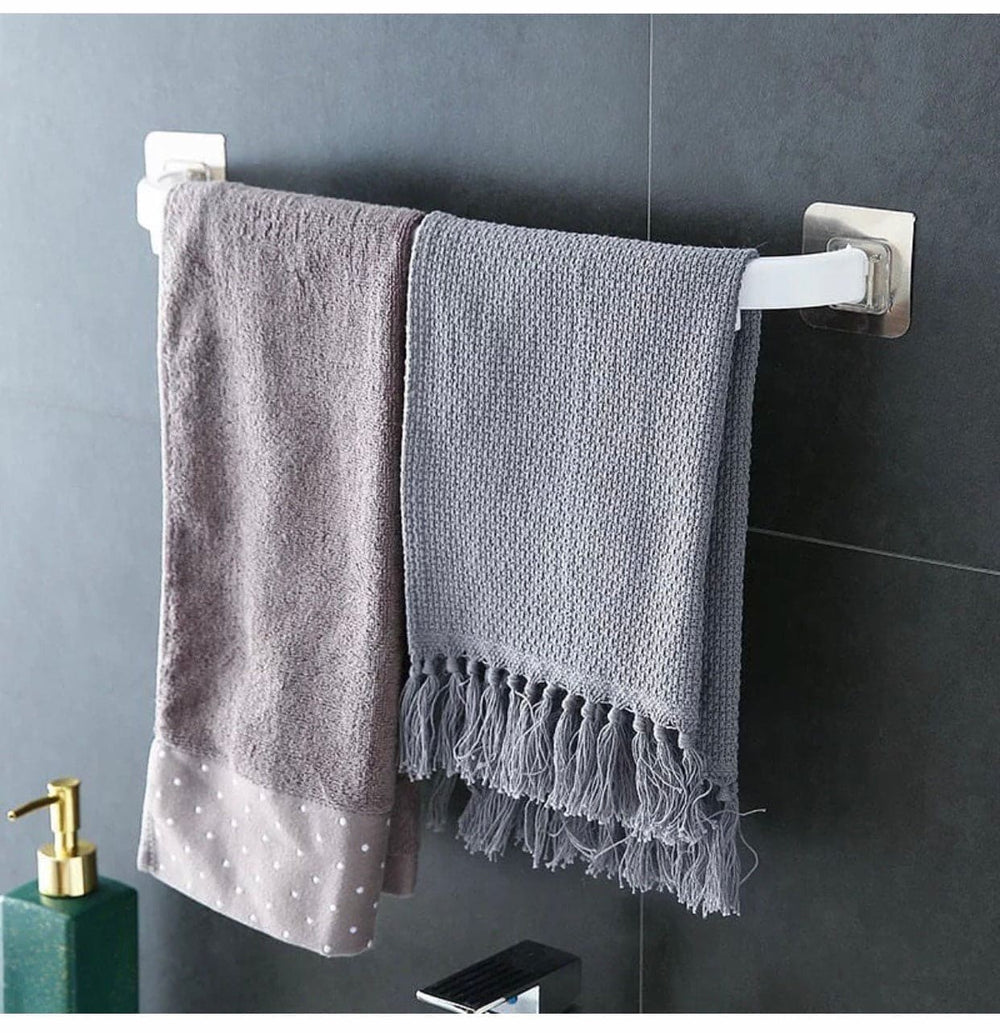 The punch free towel rack is made of durable plastic and can be used for many years. It increase the spacing, moisture and ventilation. There is self adhesive tape on the back of each towel hook which can easily fix on any flat surface without leaving any damage to the attachment place. Suitable for kitchen, bathroom and other areas where towel, bedspreads and varieties are used.