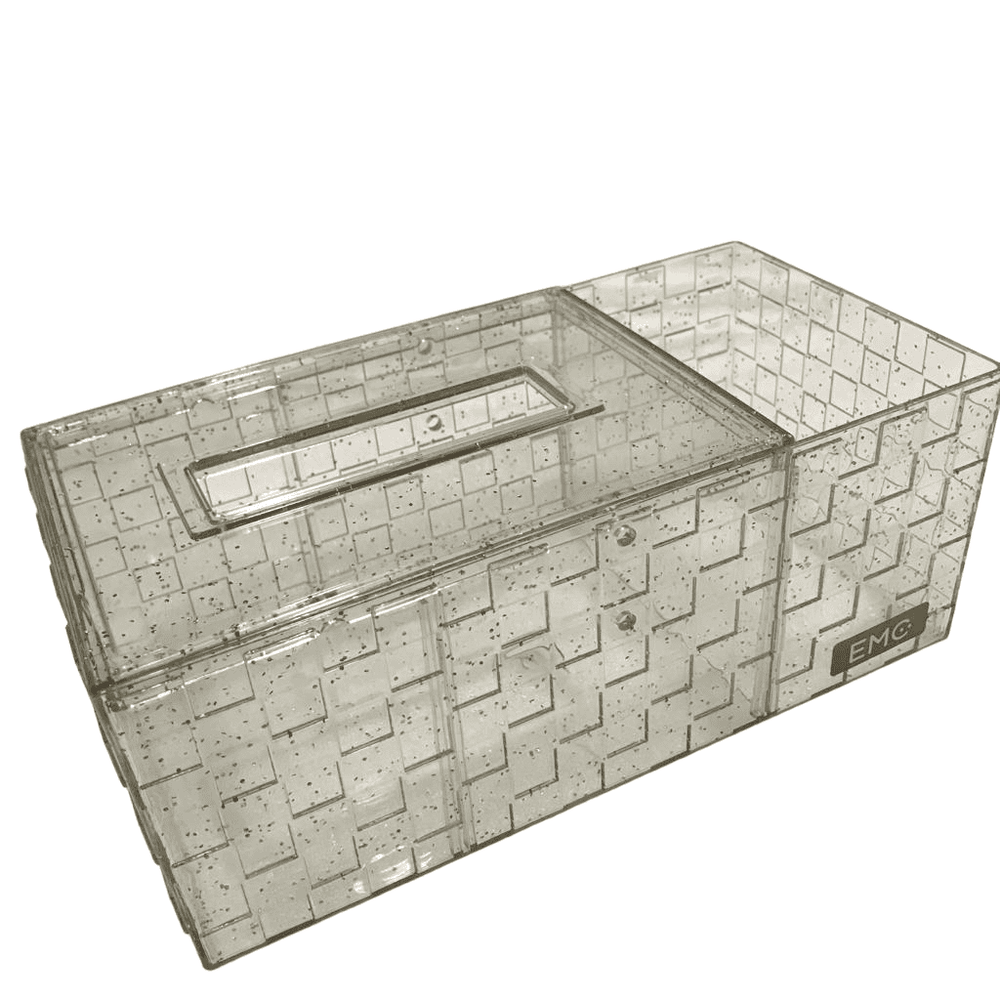 This handkerchief box adopted rectangular with block texture and transparent color, which is a beautiful decoration for your home. It adopted a storage design of 2 compartments, allowing you to put remote control, pen, makeup brushes, etc. on it. It is suitable for all tables, such as restaurants, living rooms, studio, bedroom and any other place. It is easy to open, allowing all kinds of paper towels to be packed into it, which is convenient to put papers. It adopted a widemouthed design and straightening edges, which can provide an extraction of straightening paper for you. It is made of premium and safe material, the handkerchief box is soft and durable.