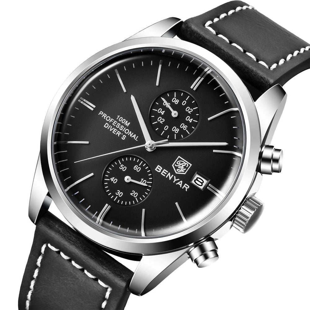 A comfortable watch with a high quality watch band. Feature: Auto Date, chronograph, Waterproof, Luminous, Luminous Hands, Shock Resistant, Stop Watch