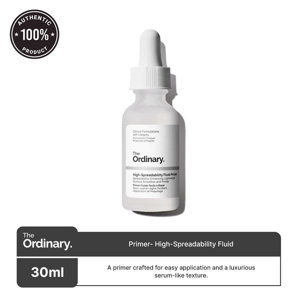 High-Spreadability Fluid Primer has a gel-like consistency, spreads easily and is economical to use. It is a new generation of primers with a lightweight serum-like formula that facilitates even application of foundation and enhances makeup lasting. Can be used as a light to non-greasy moisturizer for a fresh look.