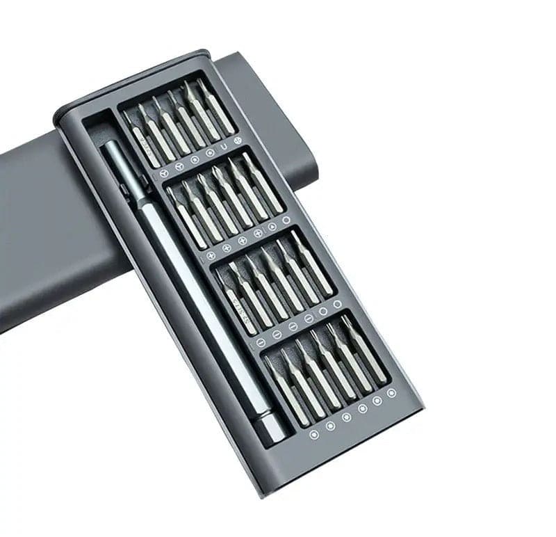 This mini screwdriver set storage case and the handle both has magnetized area design, thus the screwdriver bits can be better absorbed. It has perfect appearance design, whether effective adsorption of bit screwdriver bit does not fall off easily. It is suitable for the disassembly and maintenance for mostly electronic such as Watch, Camera, Glasses, Laptop, Cell Phone, Keyword, Headset Repairing. It is easy to carry and convenient. In aluminum case parts are not easy to fall out, which is convenient for your work. It's made with CRV high quality material, which is impact-resistant, sturdy, and durable. Every bit is engraved with its type on the surface, thus you can identify or recognize which you need quickly. the non-slip matte surface, 360-degree rotation and the fingered-rest design of the rod is all for added comfort.